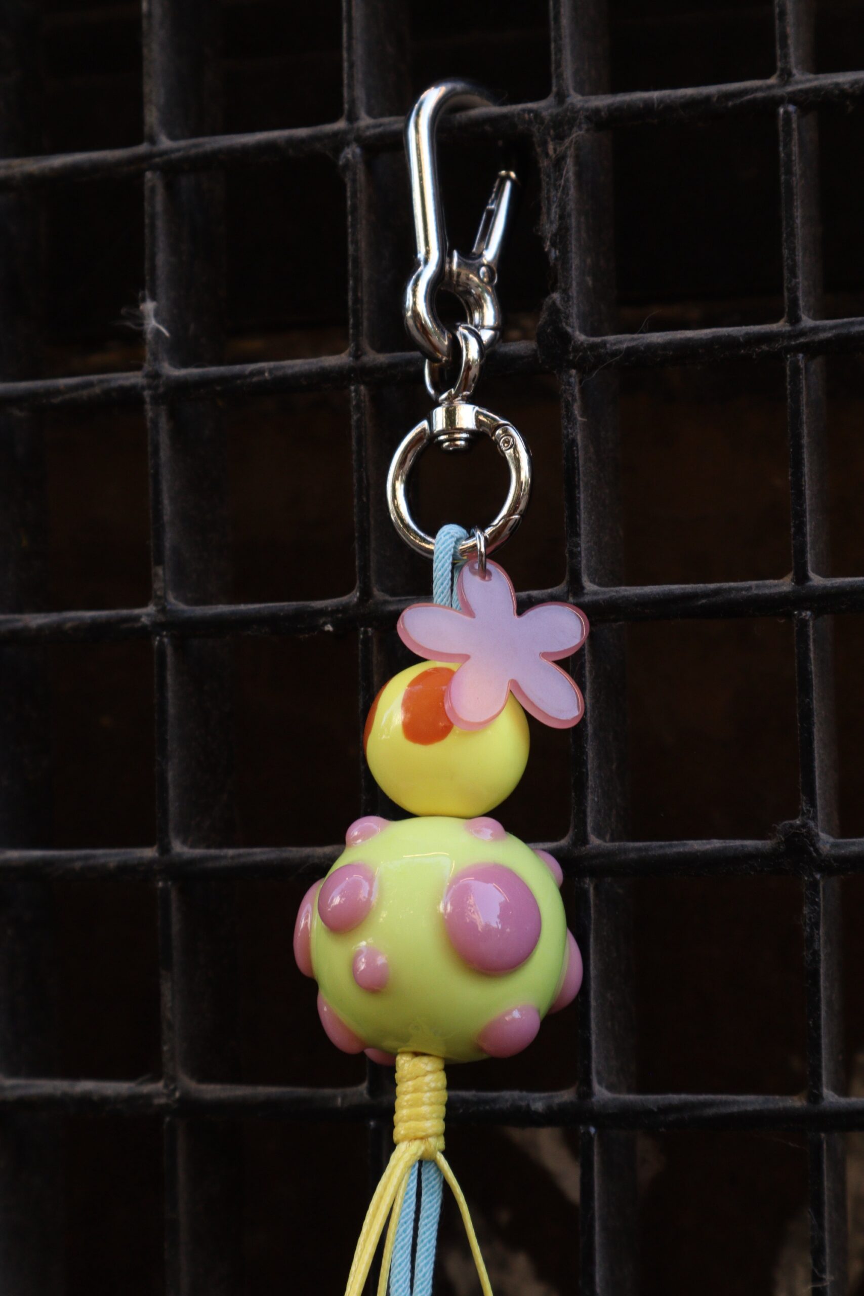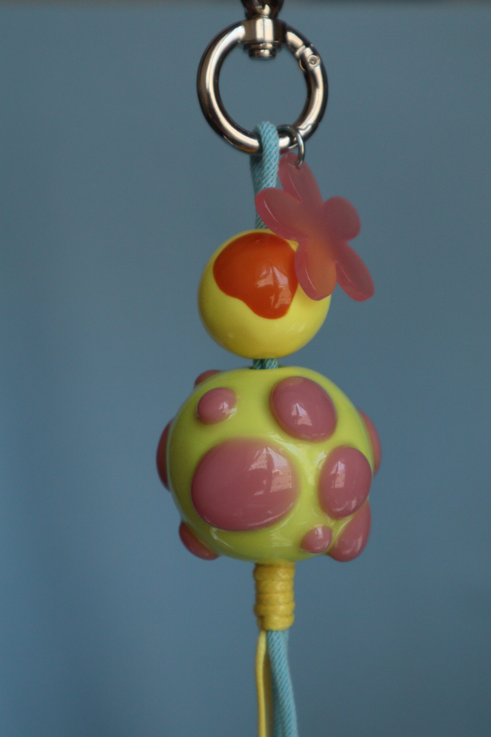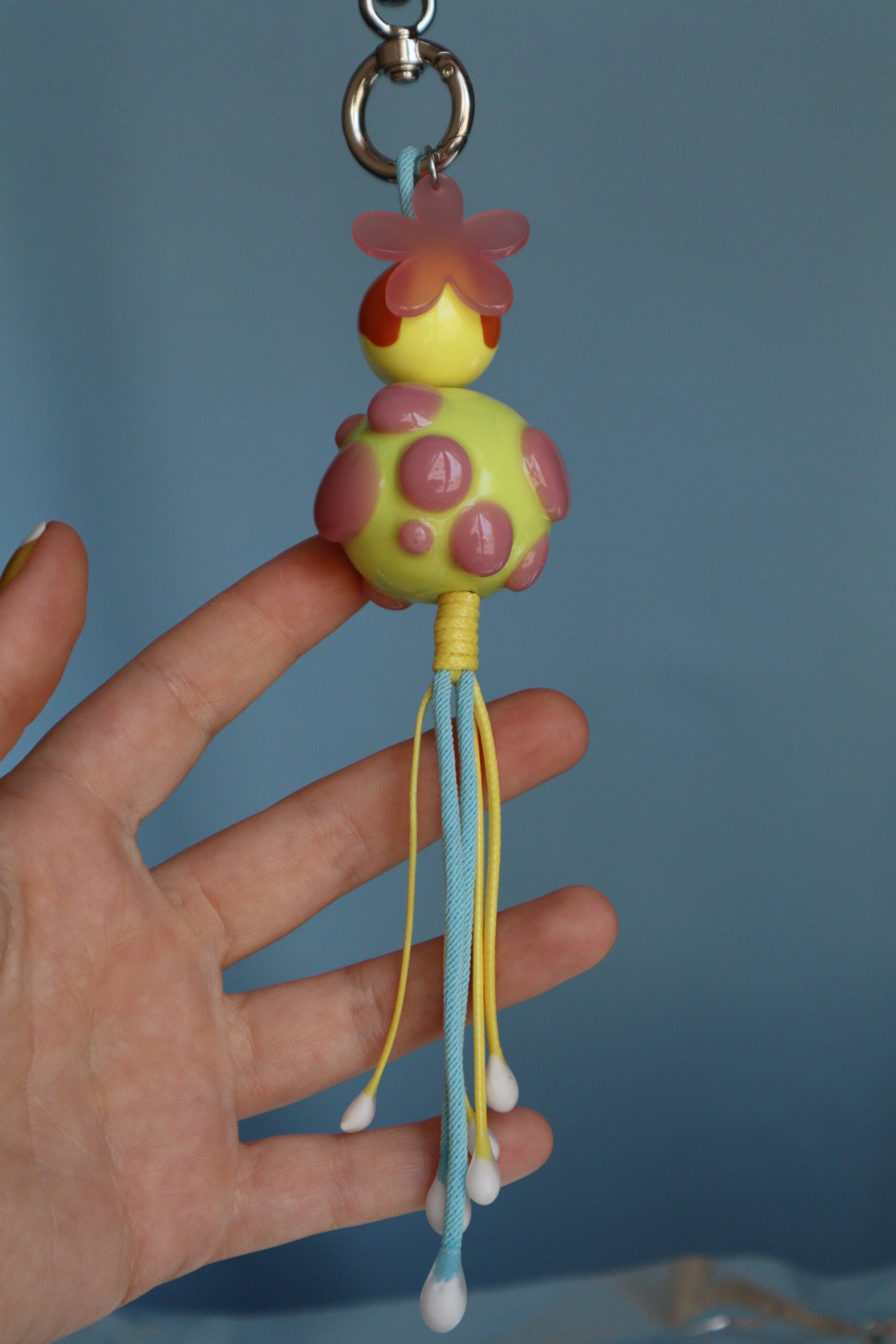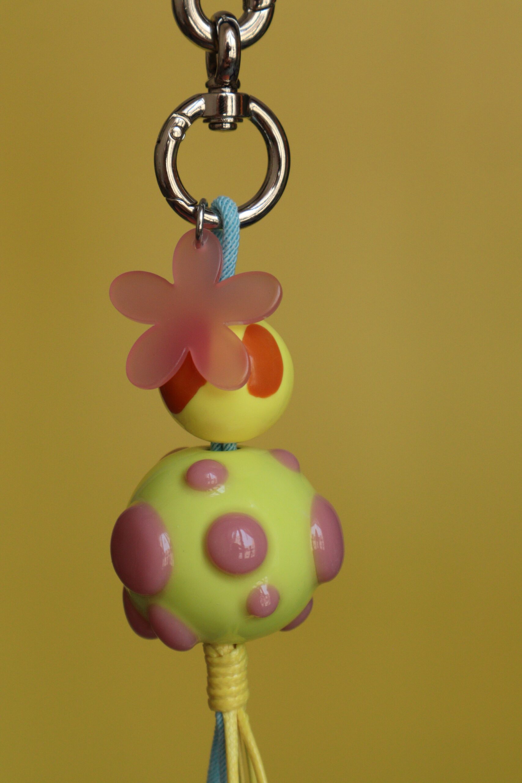 Брелок/подвес на сумку и тп. Полимерная глина, шнуры, цветочек из акрила. Длина 27 см.